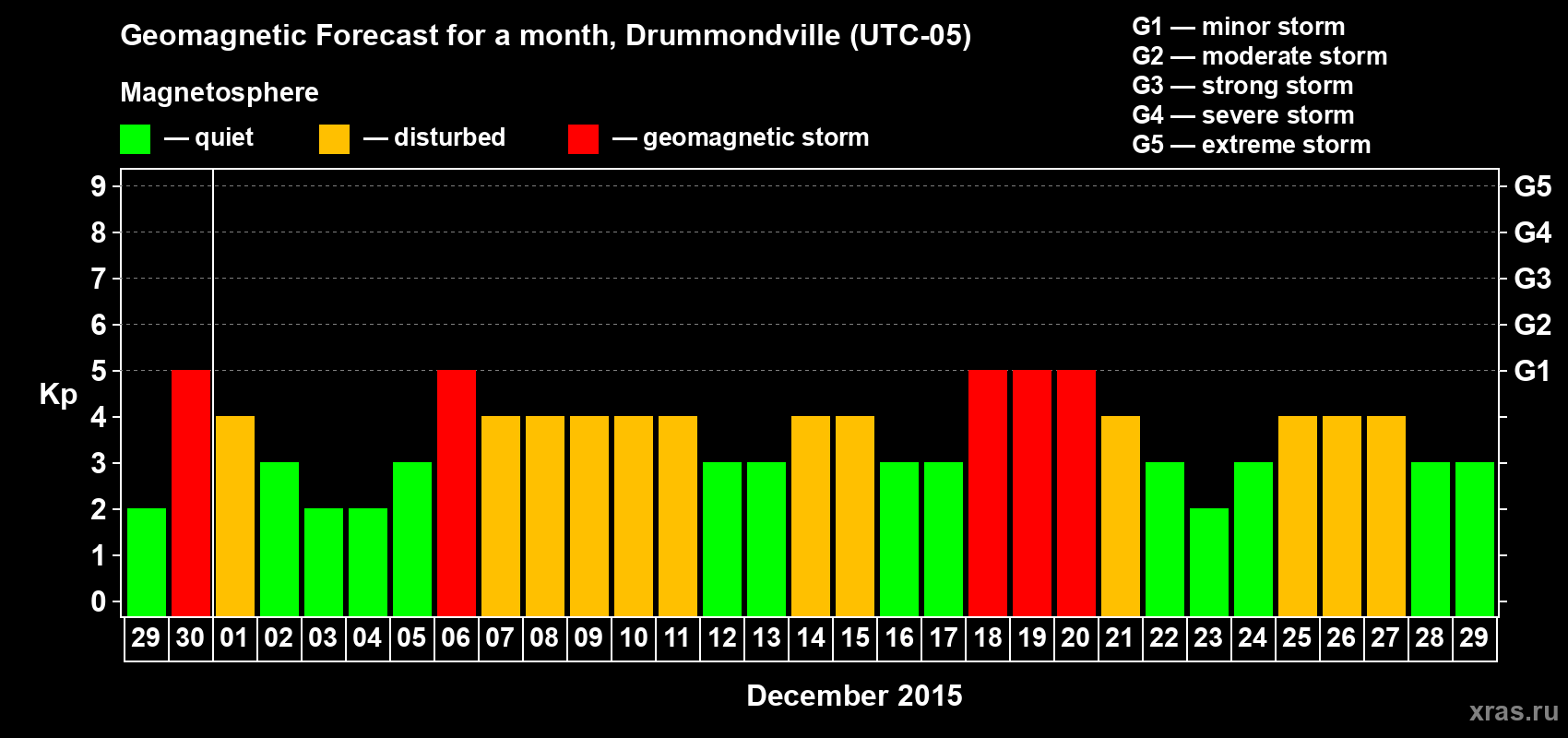 Geomagnetic storm forecast in Drummondville for Nov 29, 2015