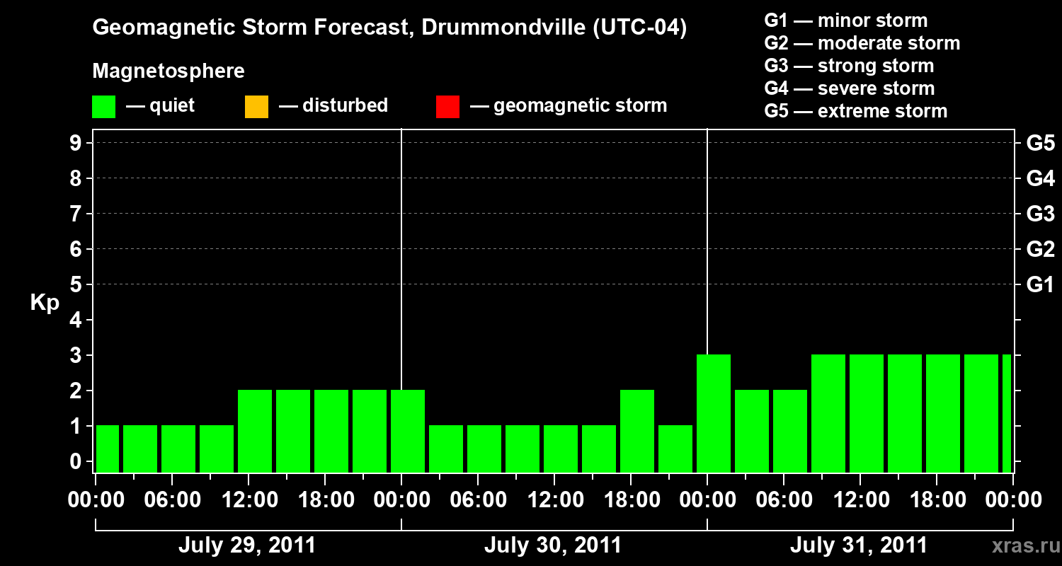 Geomagnetic activity forecast in Drummondville — Jul 29, 2011