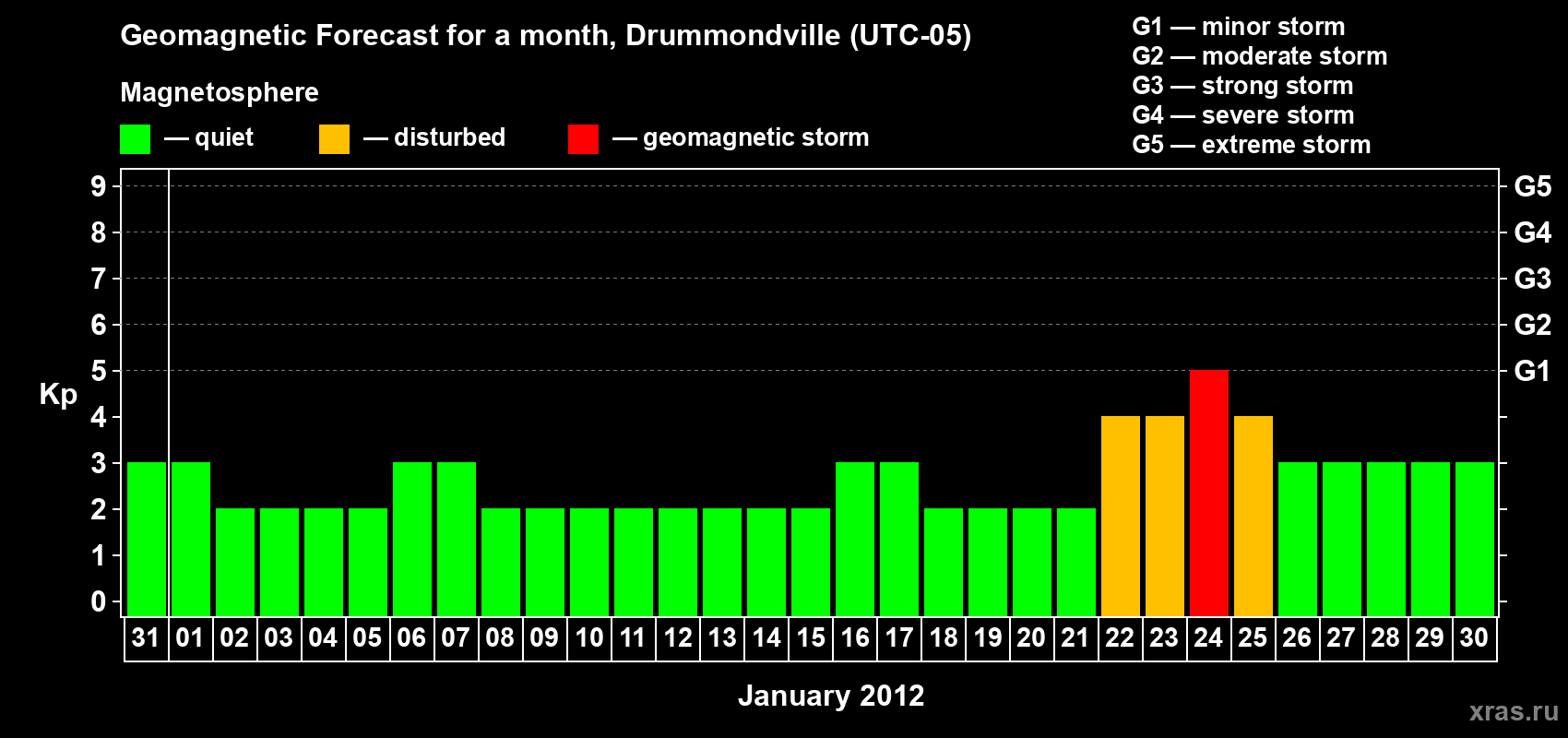 Geomagnetic storm forecast in Drummondville for Dec 31, 2011