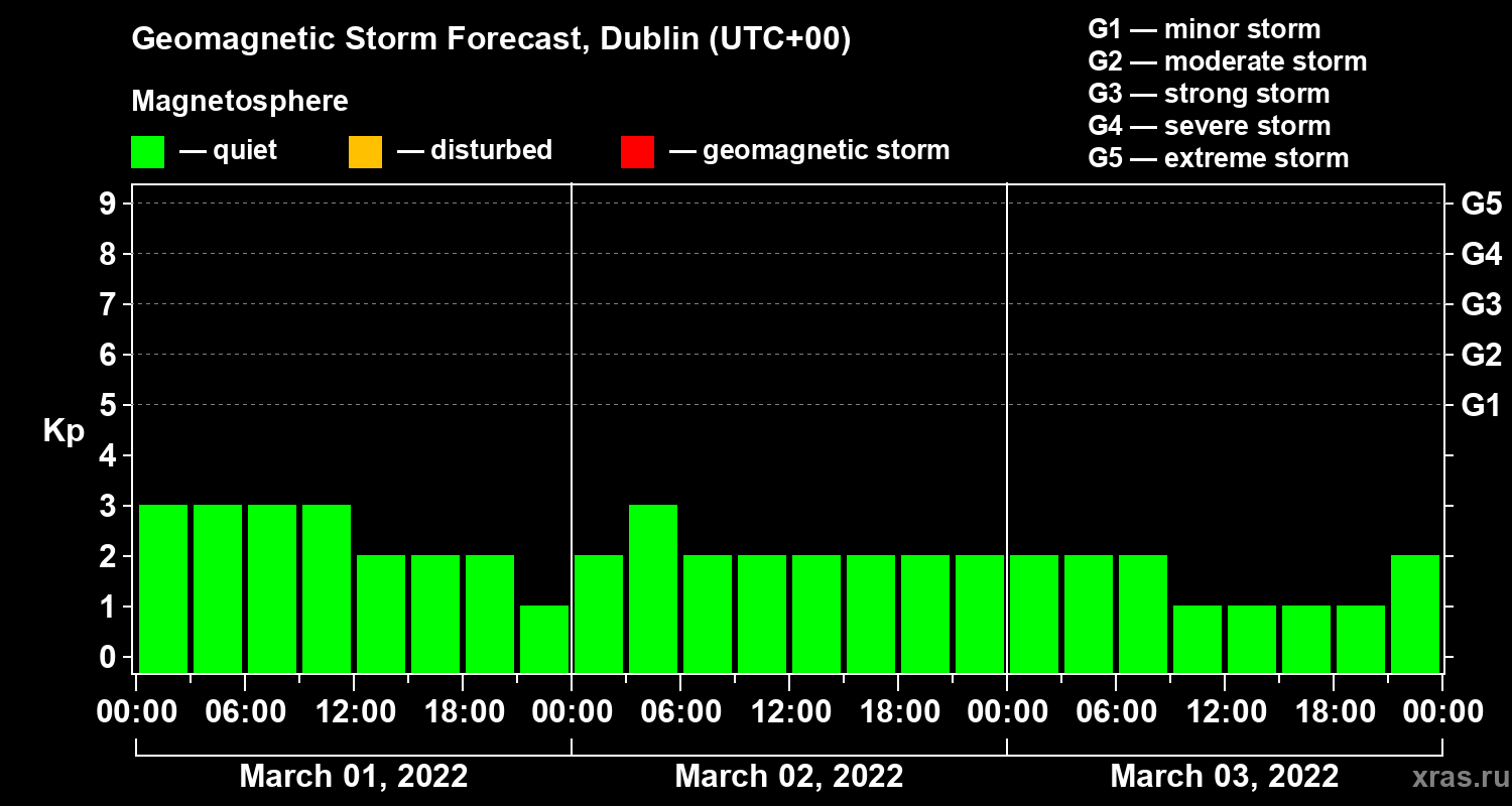 Geomagnetic storm forecast in Dublin for Mar 01, 2022