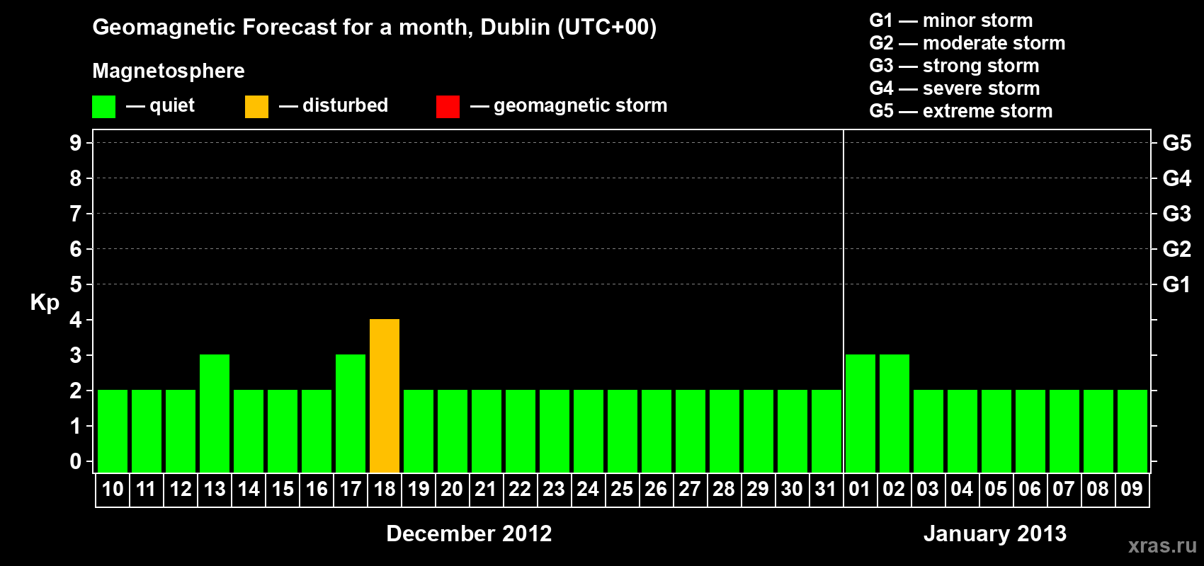 Geomagnetic storm forecast in Dublin for Dec 10, 2012