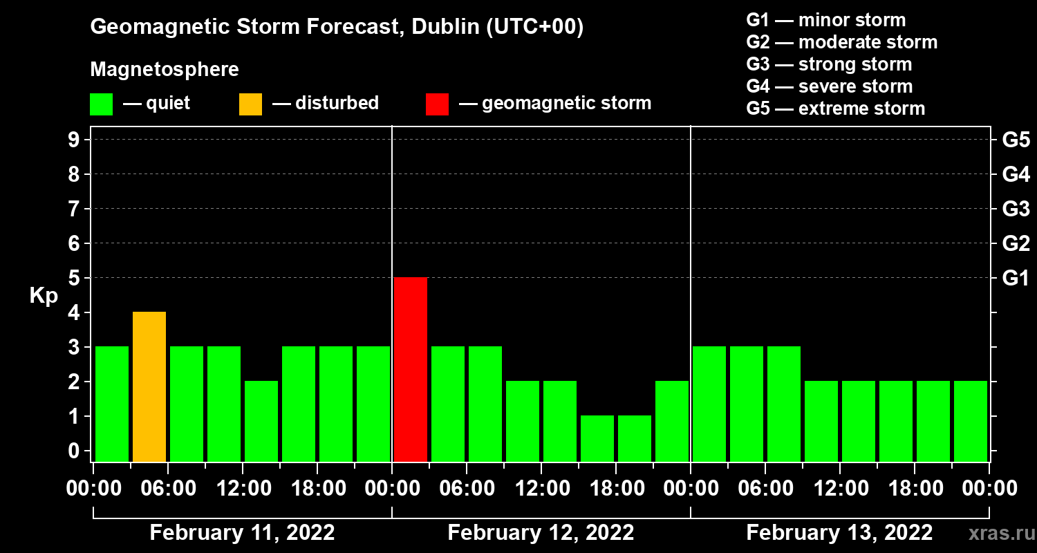 Geomagnetic storm forecast in Dublin for Feb 11, 2022