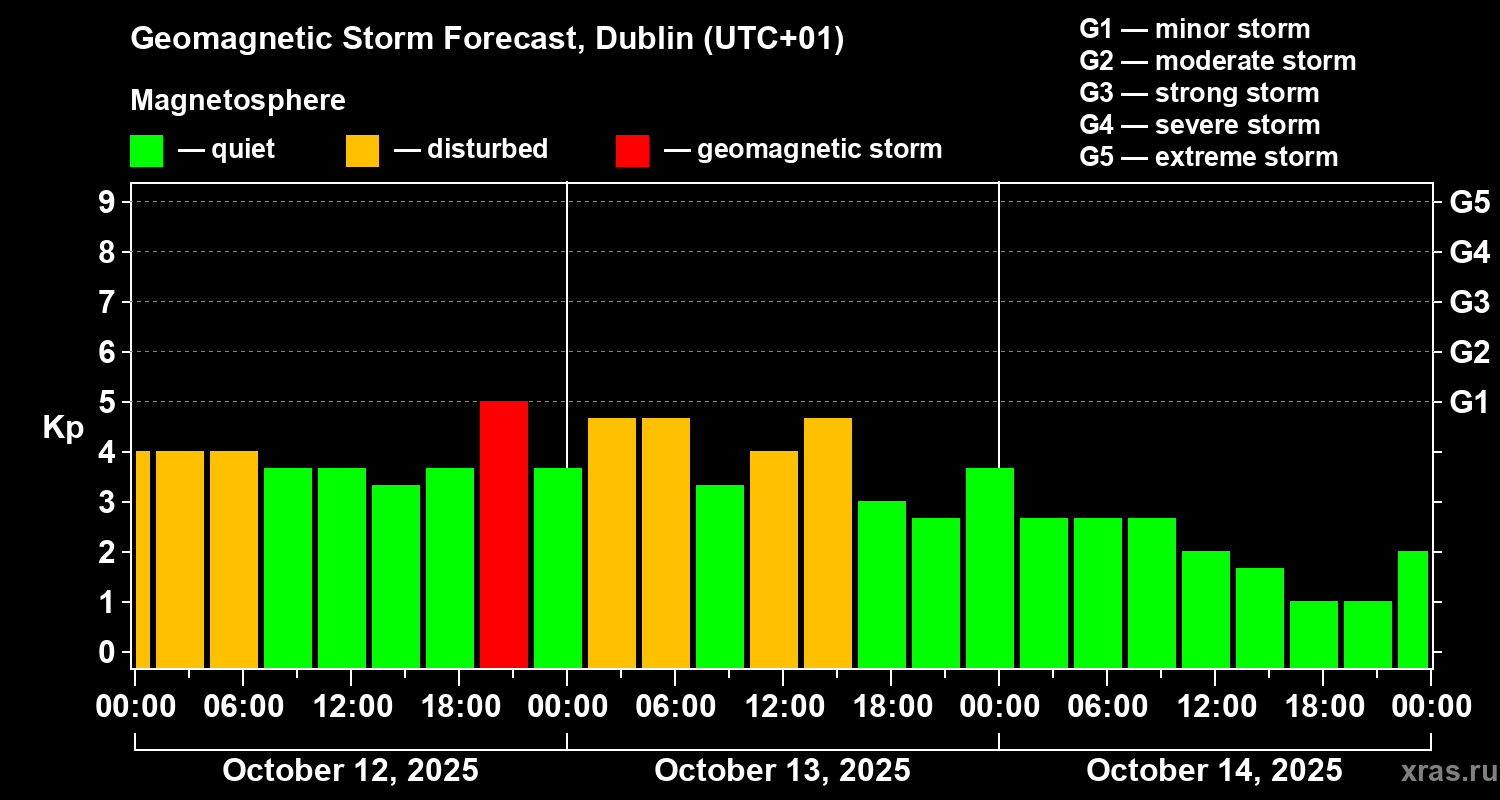 Geomagnetic storm forecast in Dublin for Oct 12, 2025