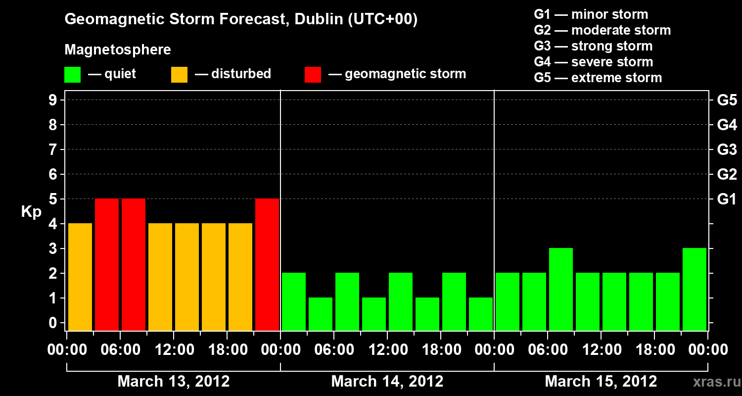 Geomagnetic storm forecast in Dublin for Mar 13, 2012
