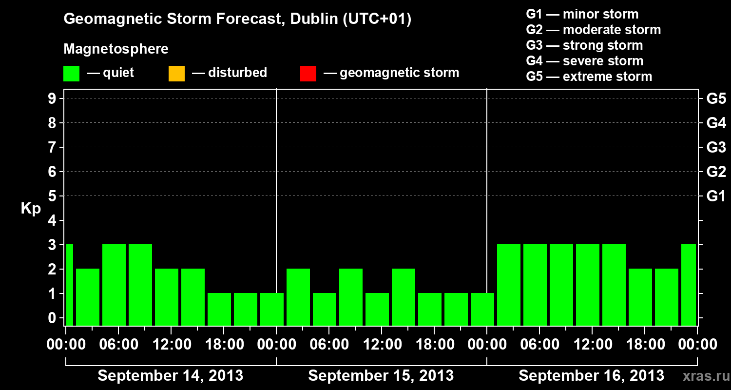 Geomagnetic storm forecast in Dublin for Sep 14, 2013