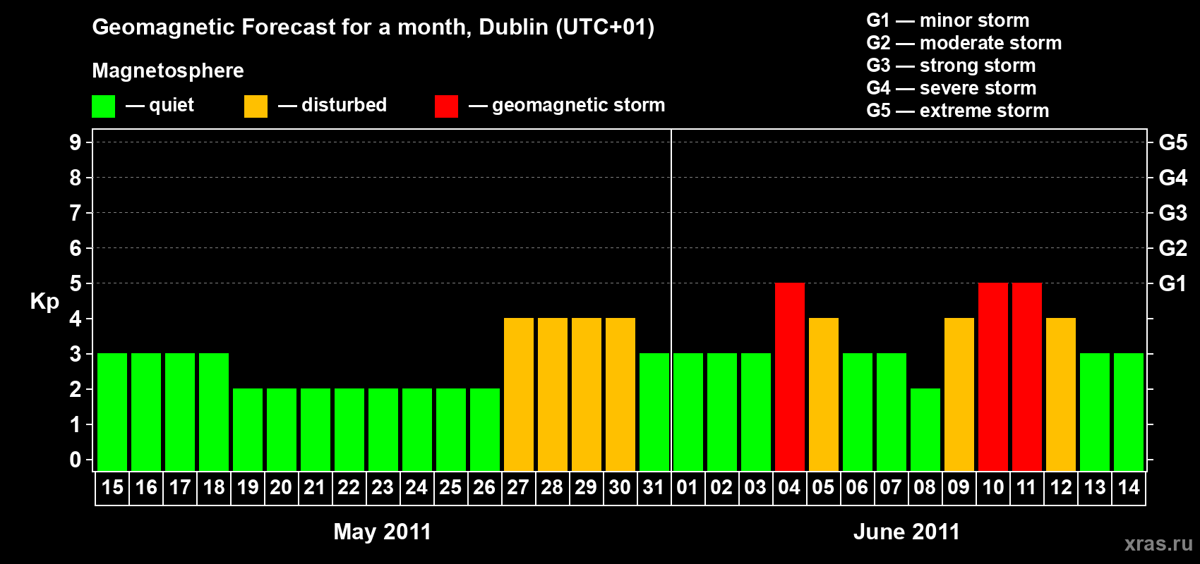 Geomagnetic storm forecast in Dublin for May 15, 2011