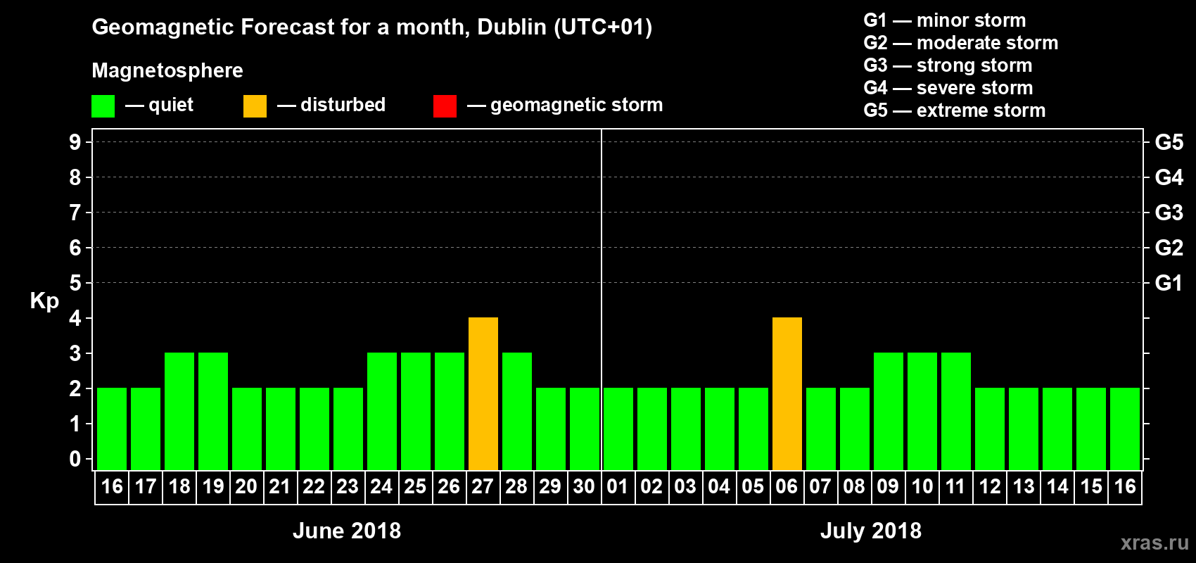 Geomagnetic storm forecast in Dublin for Jun 16, 2018