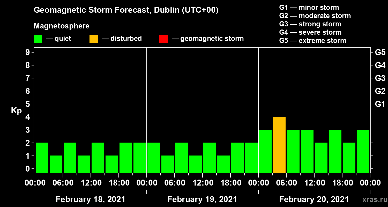 Geomagnetic storm forecast in Dublin for Feb 18, 2021