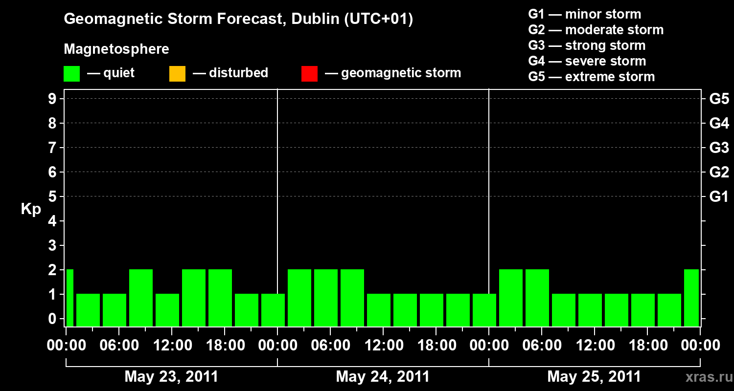 Geomagnetic storm forecast in Dublin for May 23, 2011