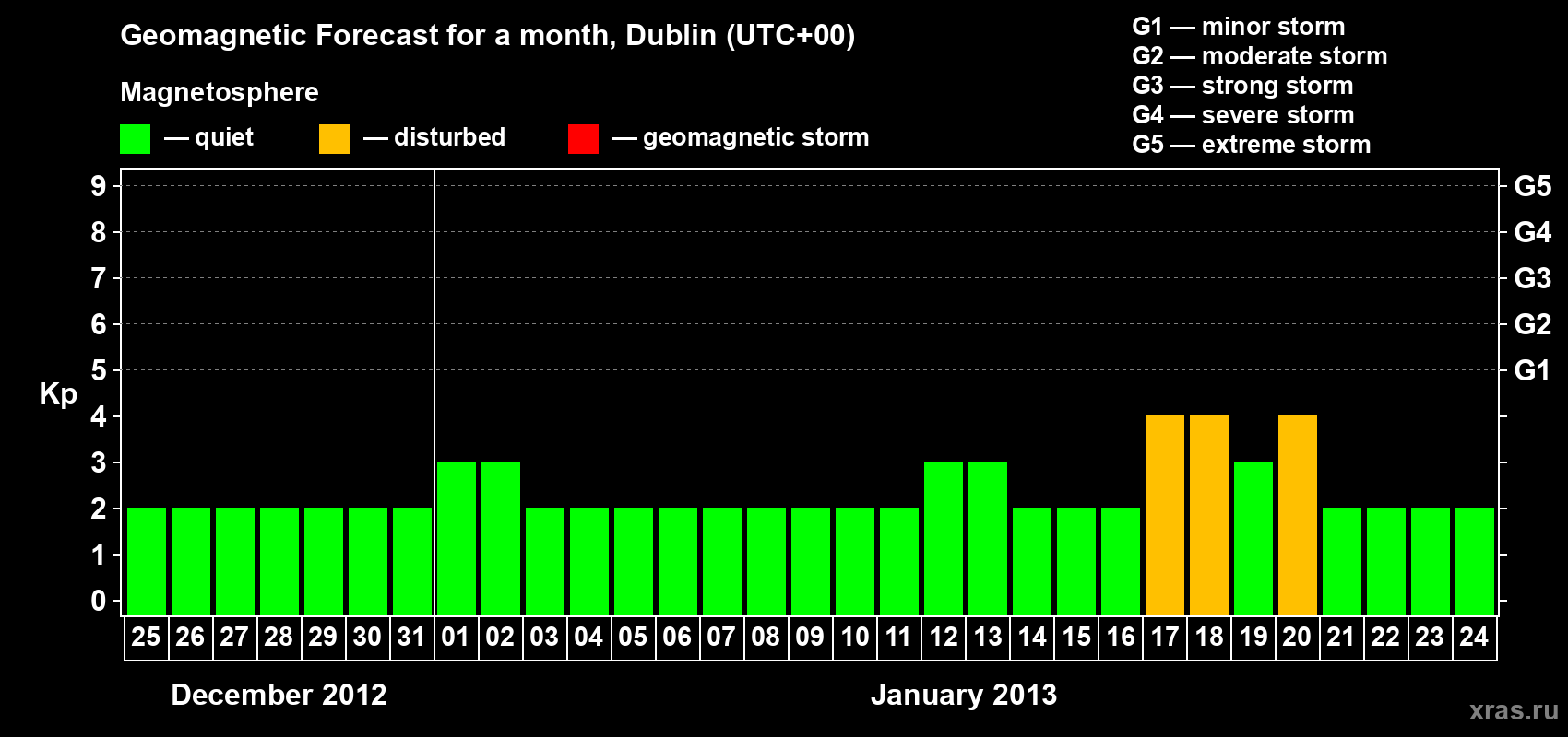 Geomagnetic storm forecast in Dublin for Dec 25, 2012