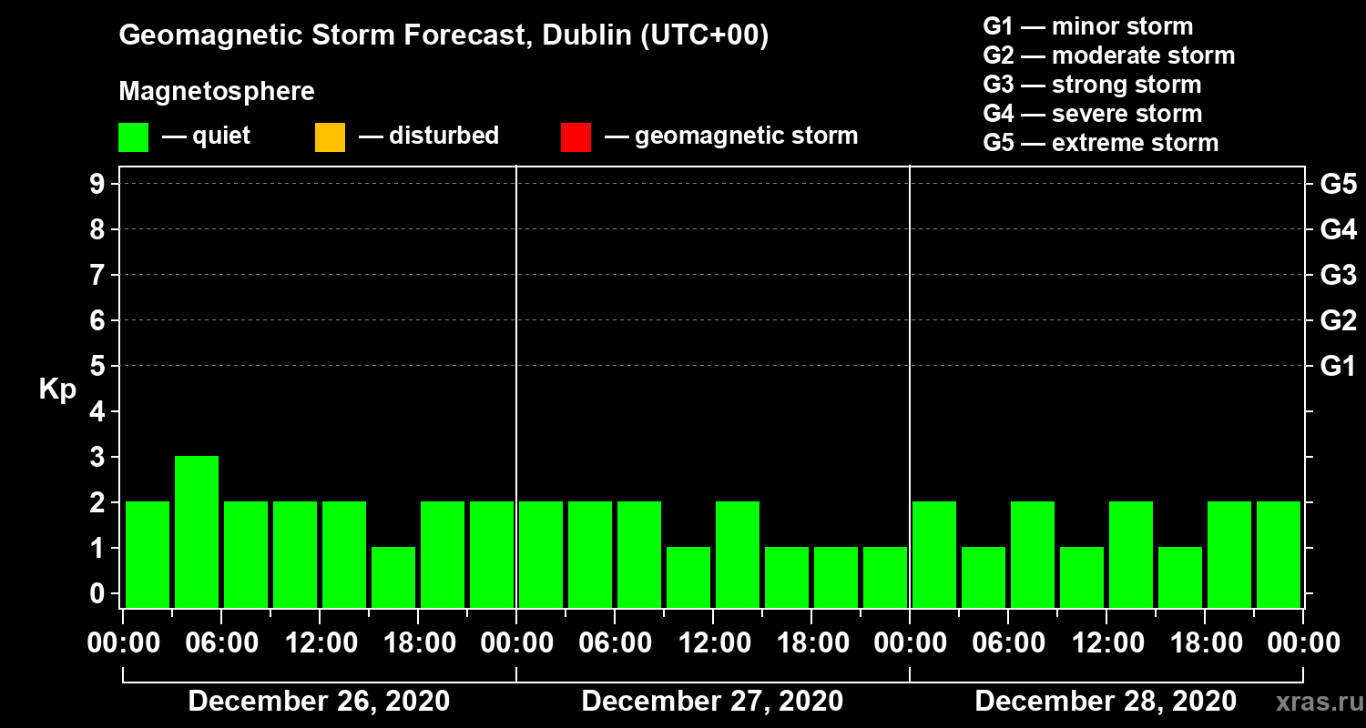 Geomagnetic storm forecast in Dublin for Dec 26, 2020