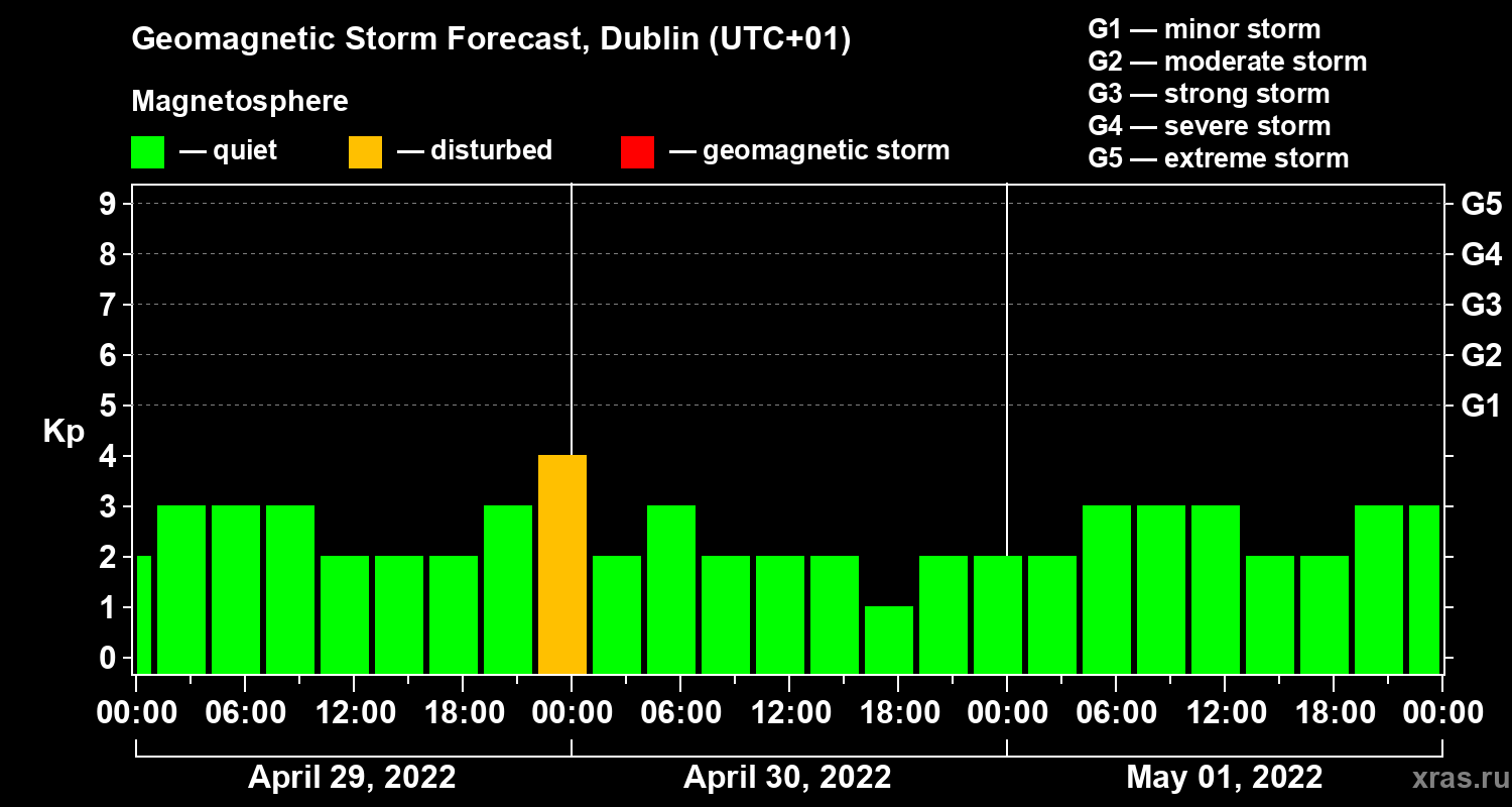Geomagnetic storm forecast in Dublin for Apr 29, 2022