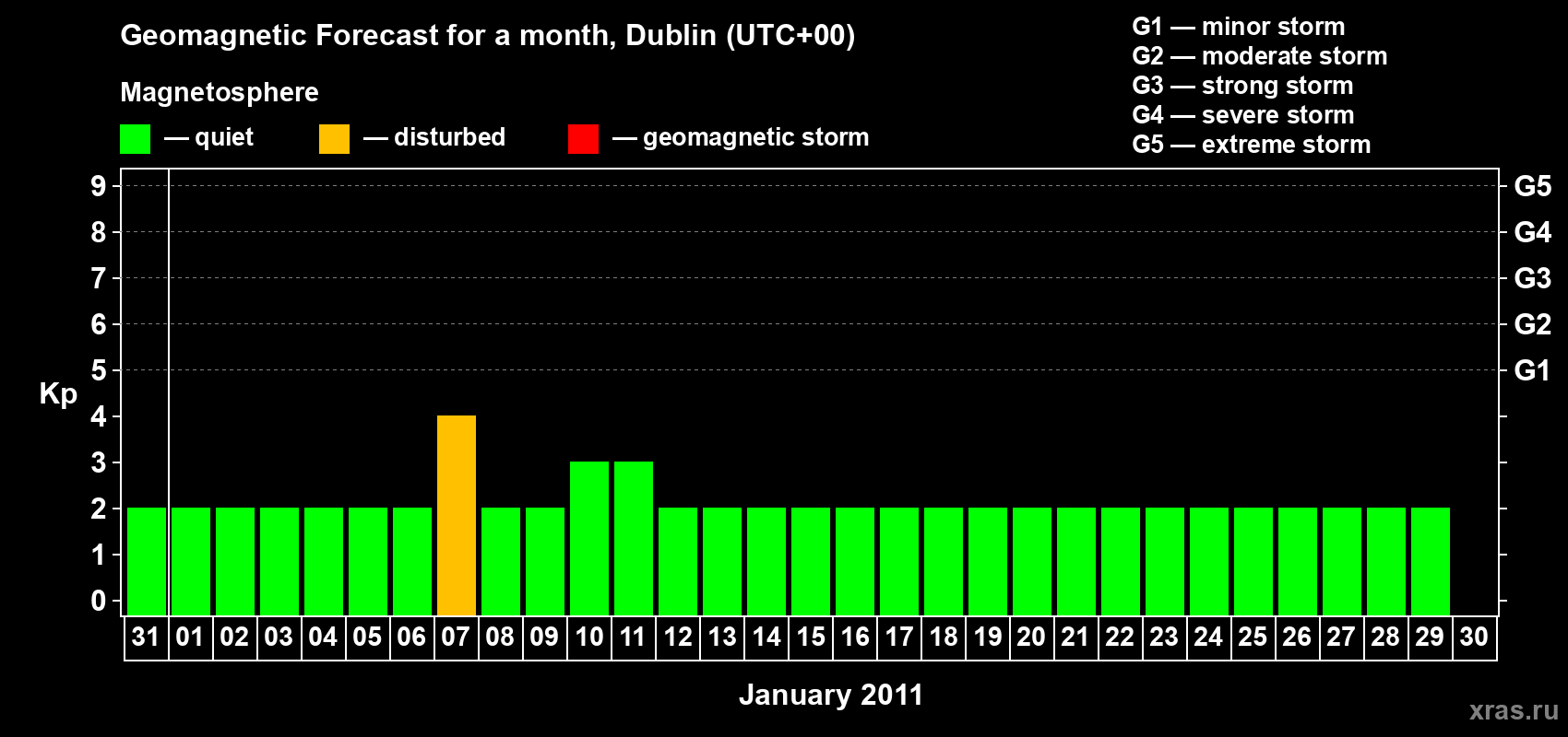 Geomagnetic storm forecast in Dublin for Dec 31, 2010