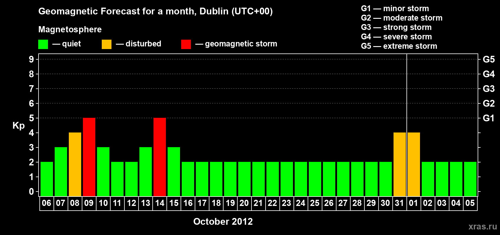 Geomagnetic storm forecast in Dublin for Oct 06, 2012