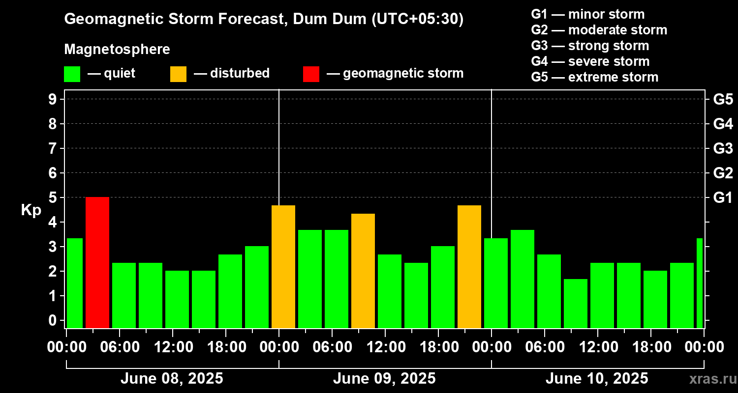 Geomagnetic storm forecast in Dum Dum for Jun 08, 2025