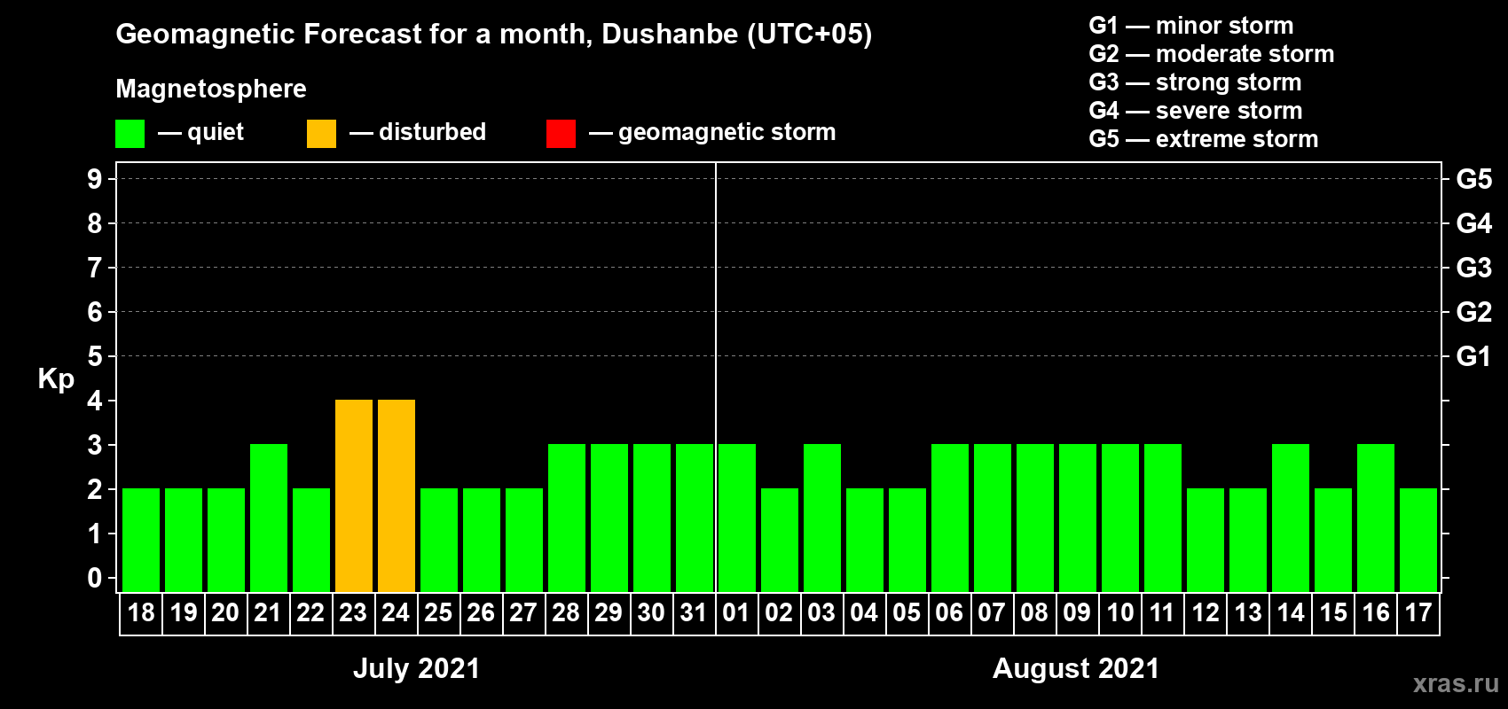 Geomagnetic storm forecast in Dushanbe for Jul 18, 2021