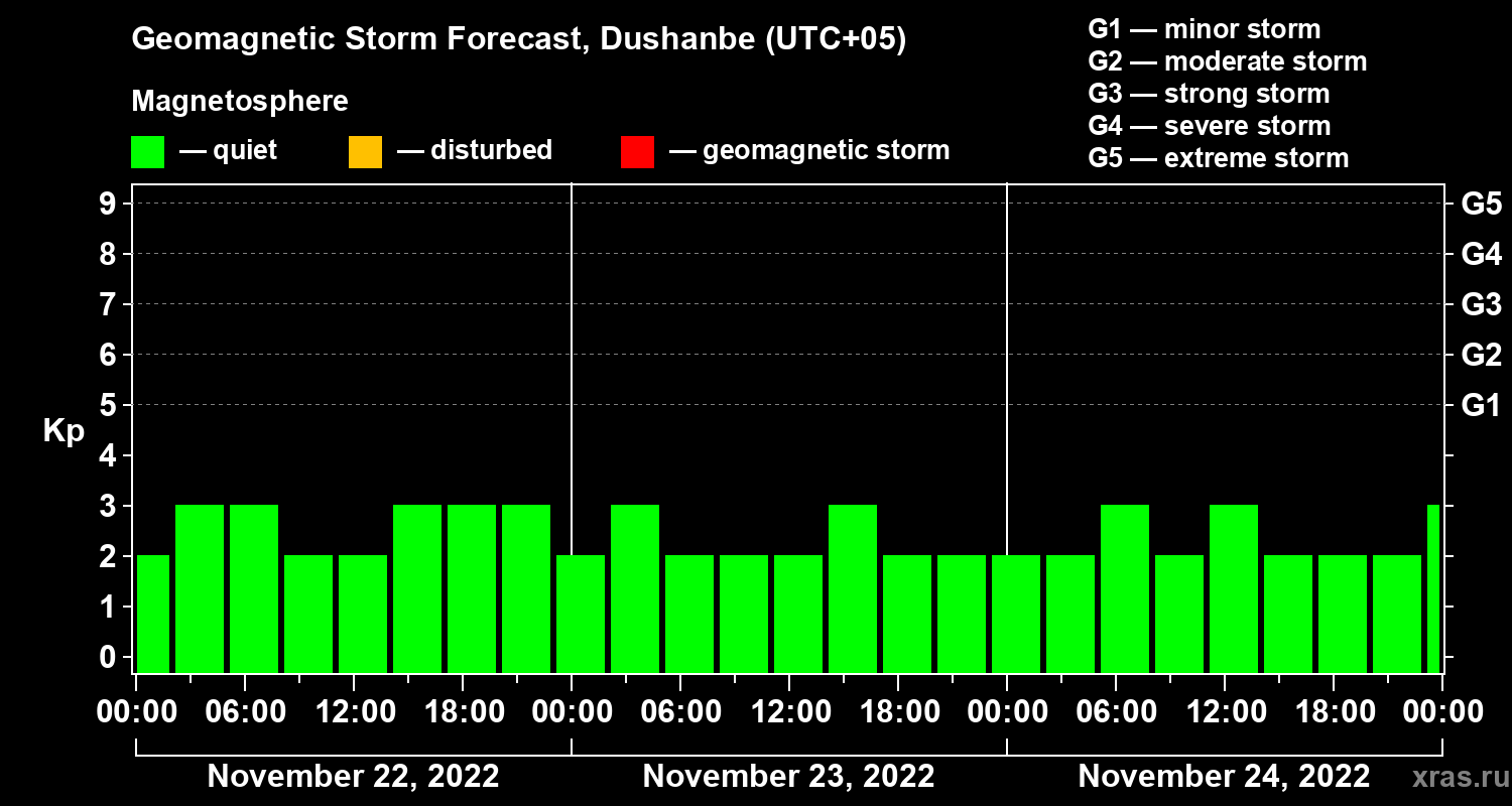 Geomagnetic storm forecast in Dushanbe for Nov 22, 2022