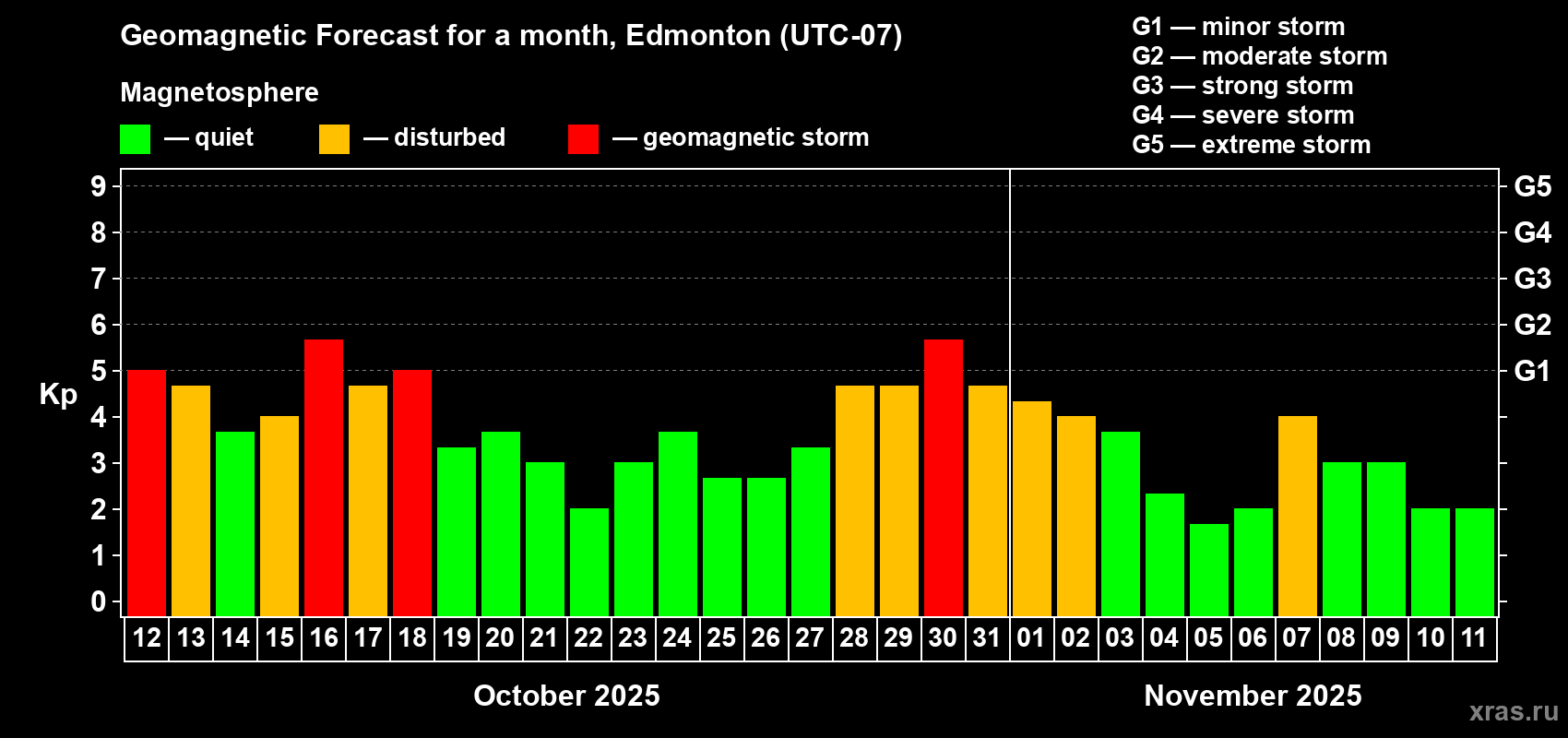 Geomagnetic storm forecast in Edmonton for Oct 12, 2025