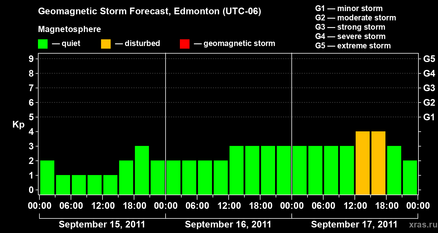 Geomagnetic storm forecast in Edmonton for Sep 15, 2011