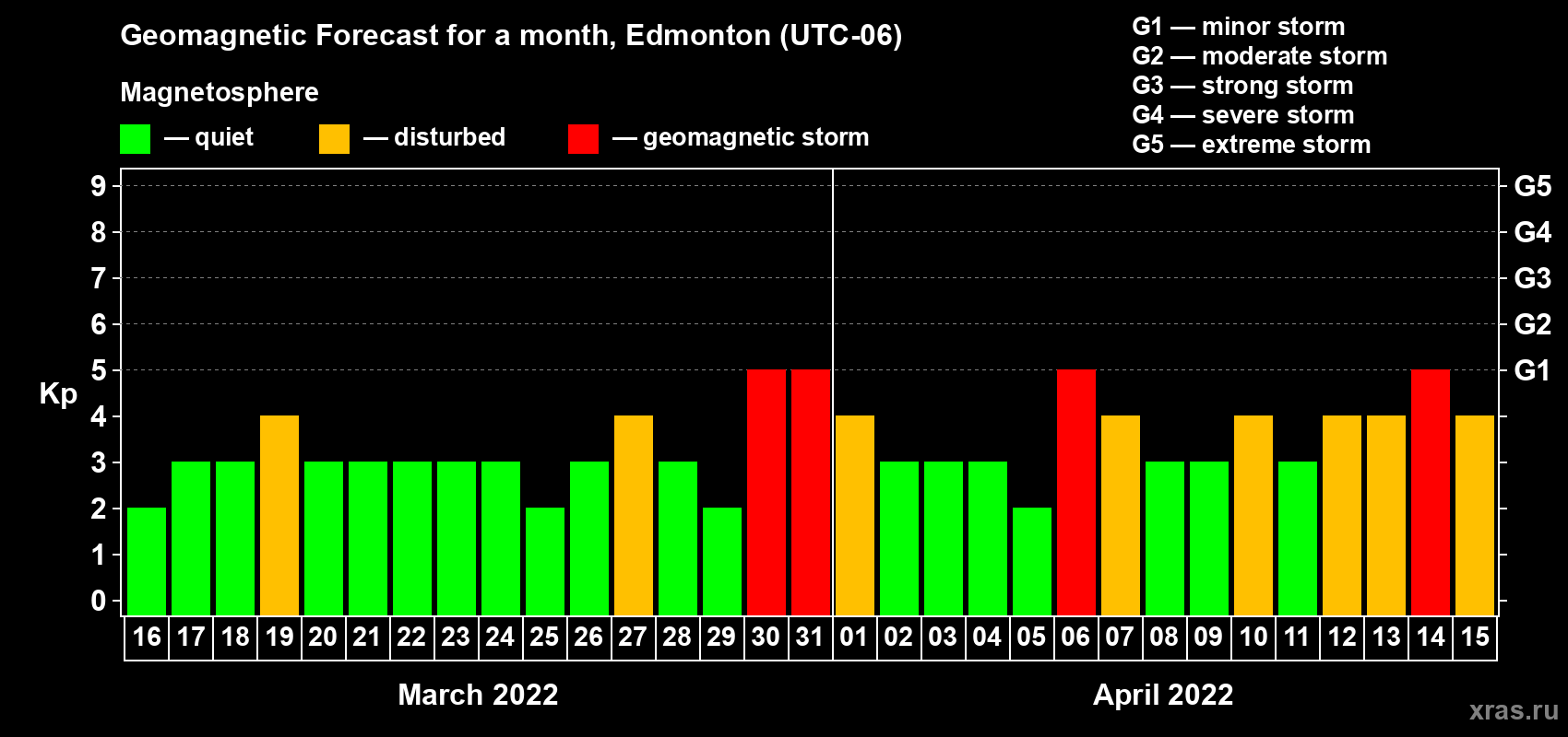 Geomagnetic storm forecast in Edmonton for Mar 16, 2022