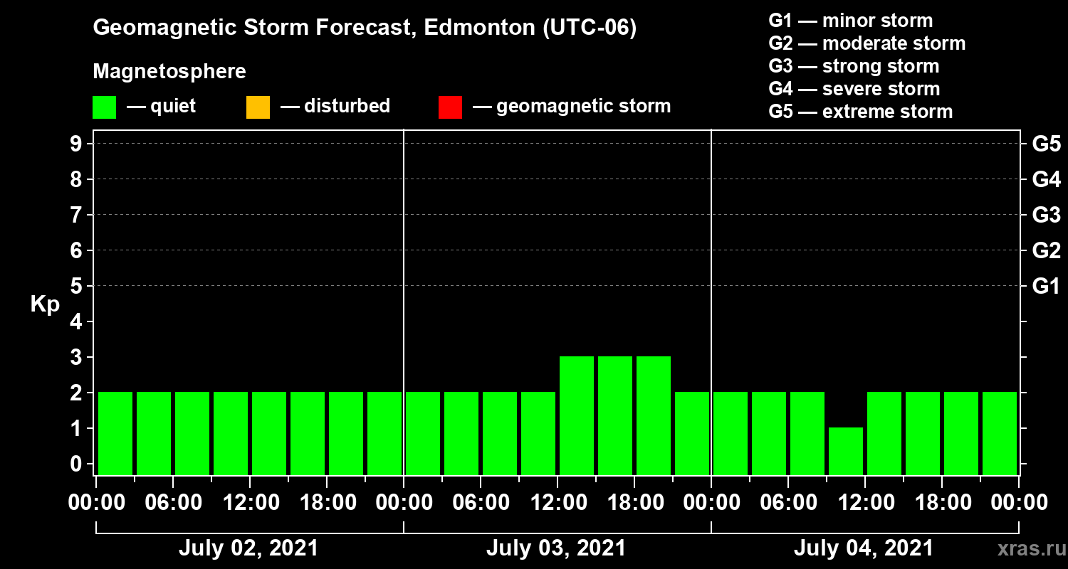 Geomagnetic storm forecast in Edmonton for Jul 02, 2021