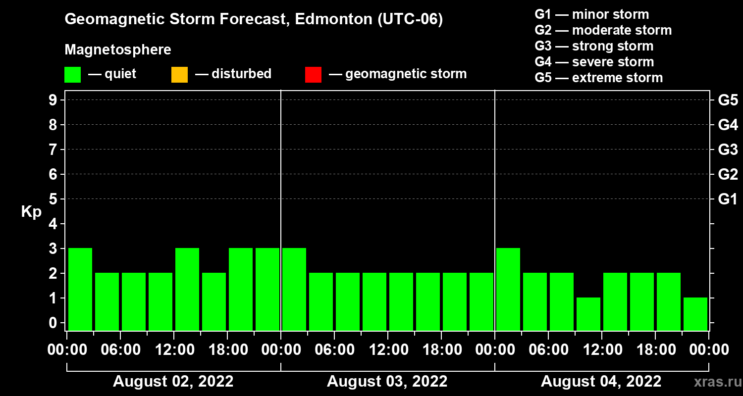 Geomagnetic storm forecast in Edmonton for Aug 02, 2022