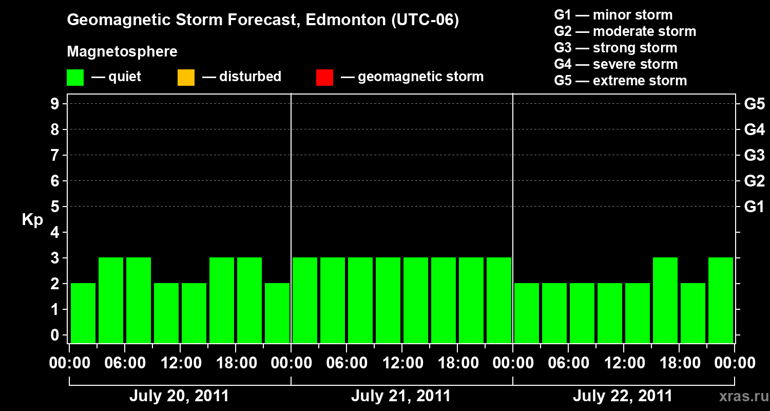 Geomagnetic storm forecast in Edmonton for Jul 20, 2011
