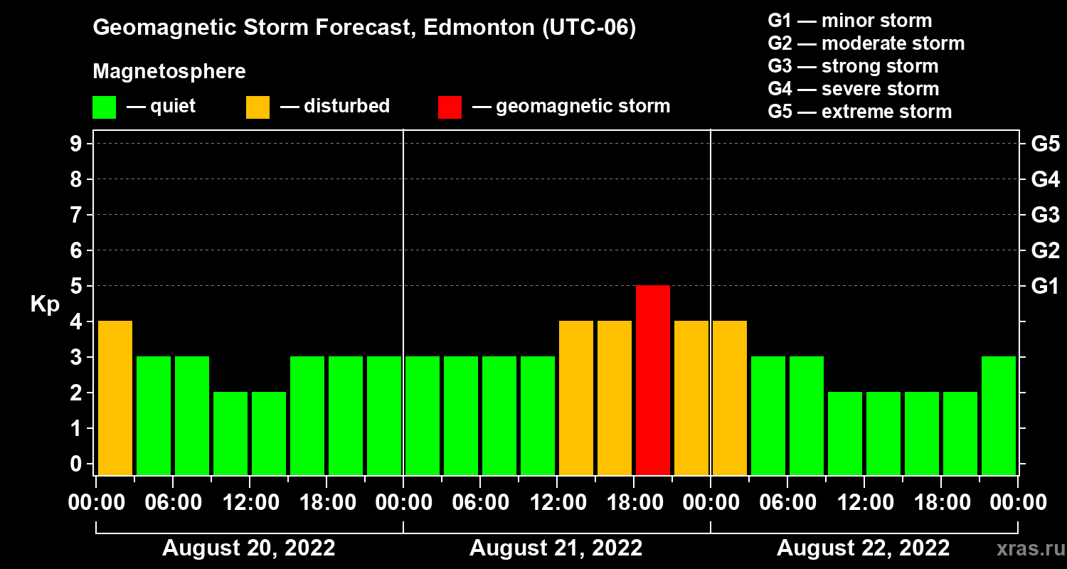 Geomagnetic storm forecast in Edmonton for Aug 20, 2022