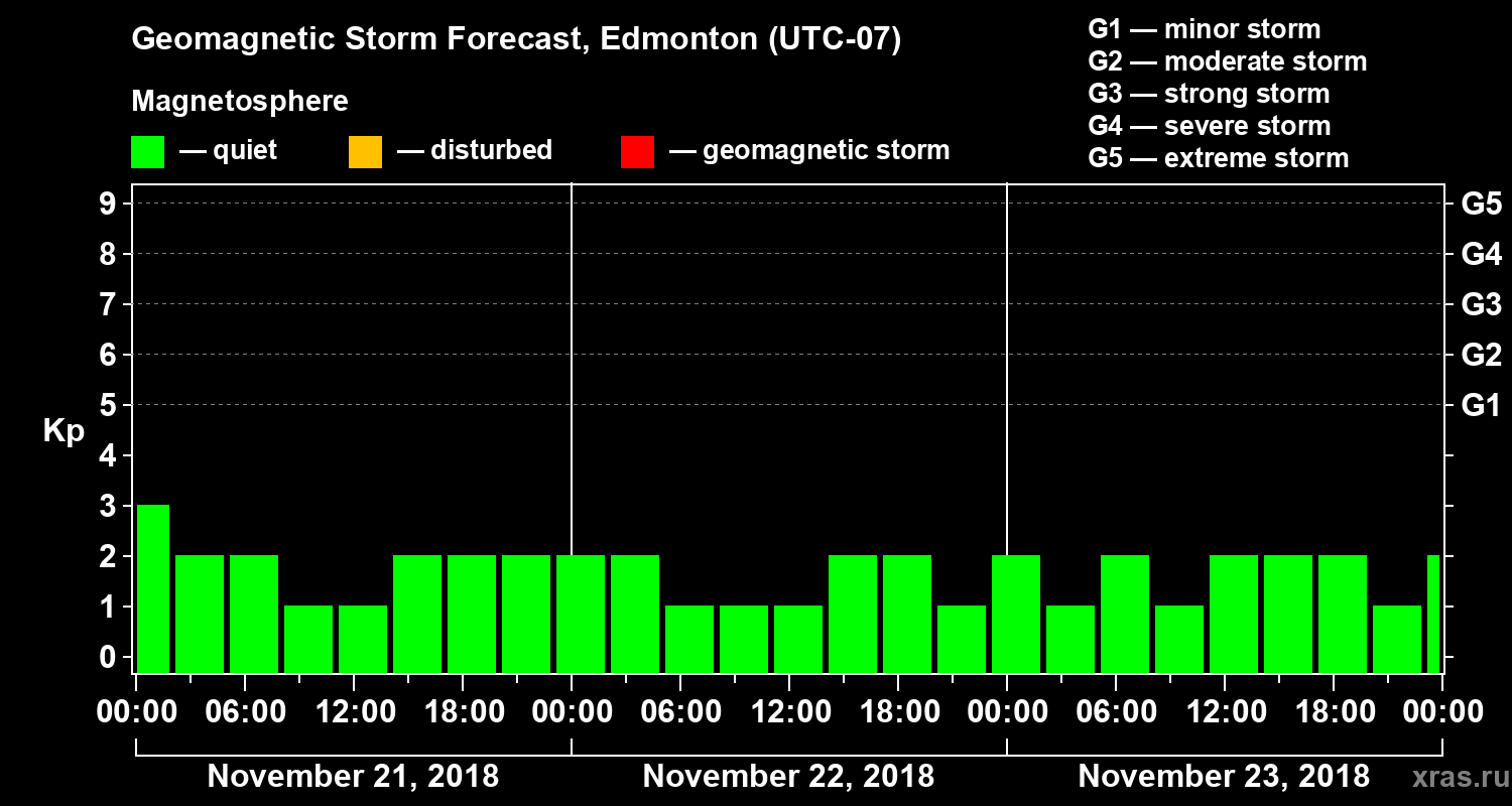 Geomagnetic storm forecast in Edmonton for Nov 21, 2018