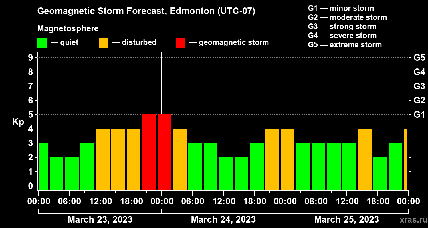 Geomagnetic storm forecast in Edmonton for Mar 23, 2023