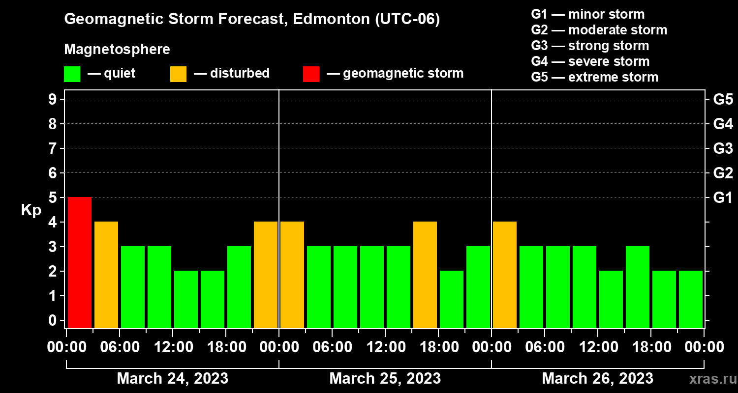 Geomagnetic storm forecast in Edmonton for Mar 24, 2023