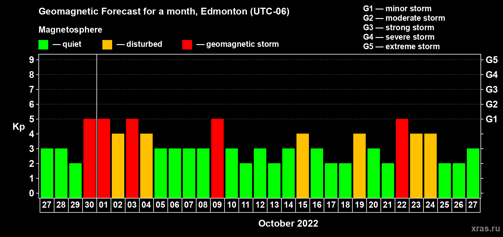 Geomagnetic storm forecast in Edmonton for Sep 27, 2022