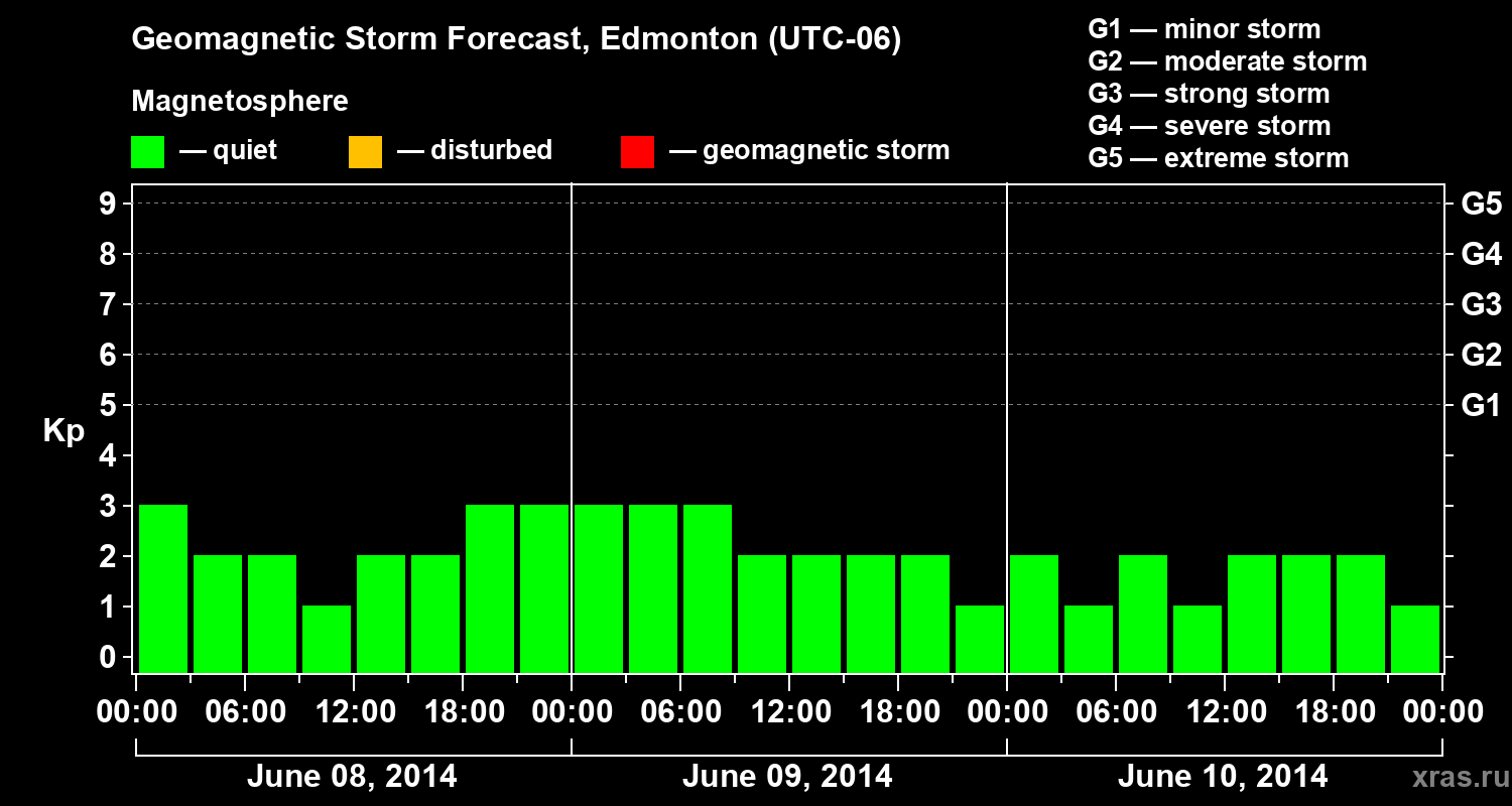 Geomagnetic storm forecast in Edmonton for Jun 08, 2014