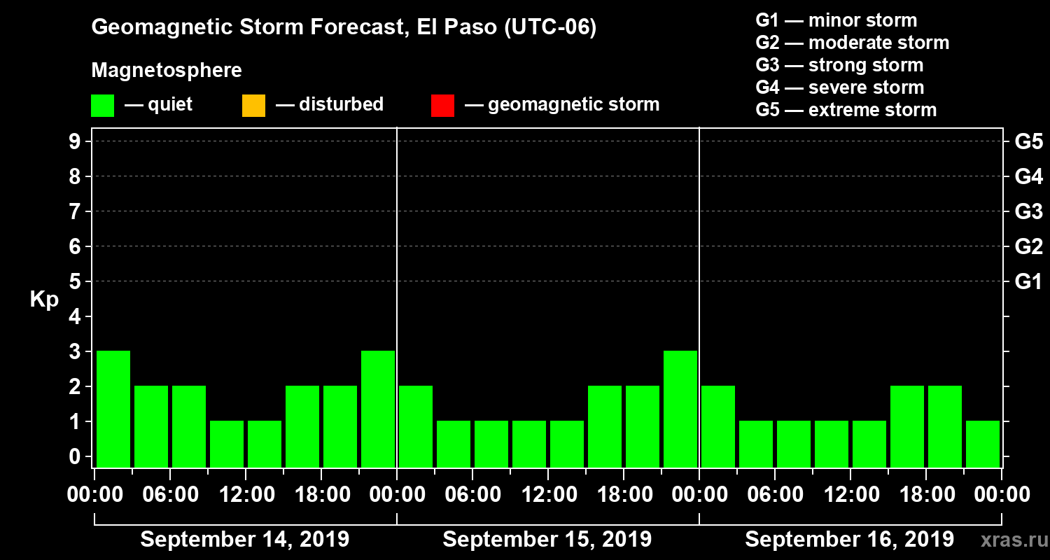 Geomagnetic storm forecast in El Paso for Sep 14, 2019