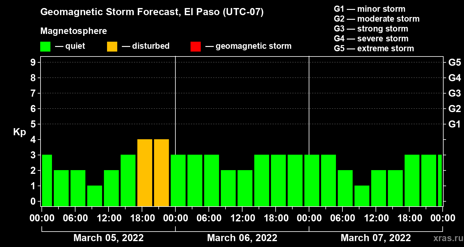 Geomagnetic storm forecast in El Paso for Mar 05, 2022