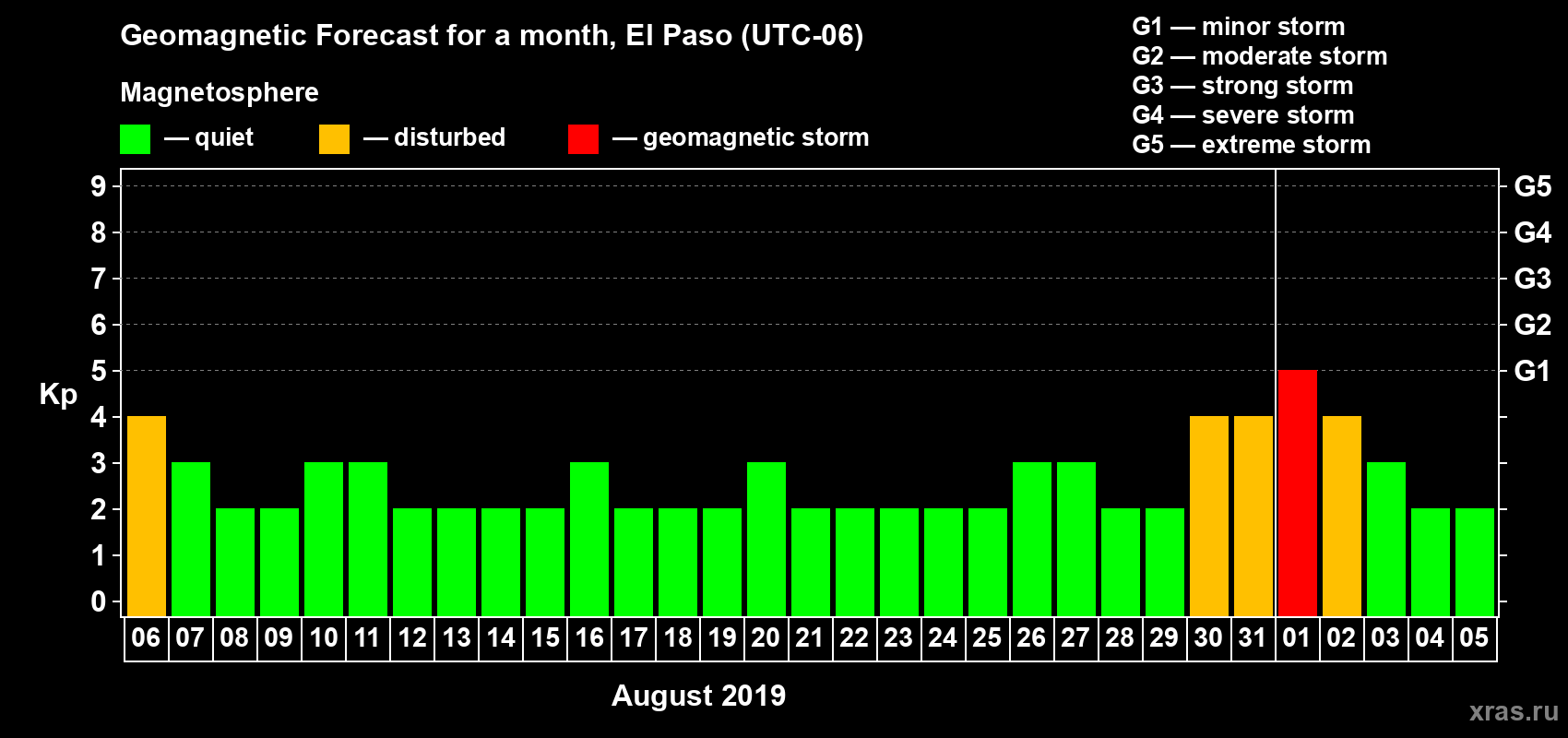 Geomagnetic storm forecast in El Paso for Aug 06, 2019