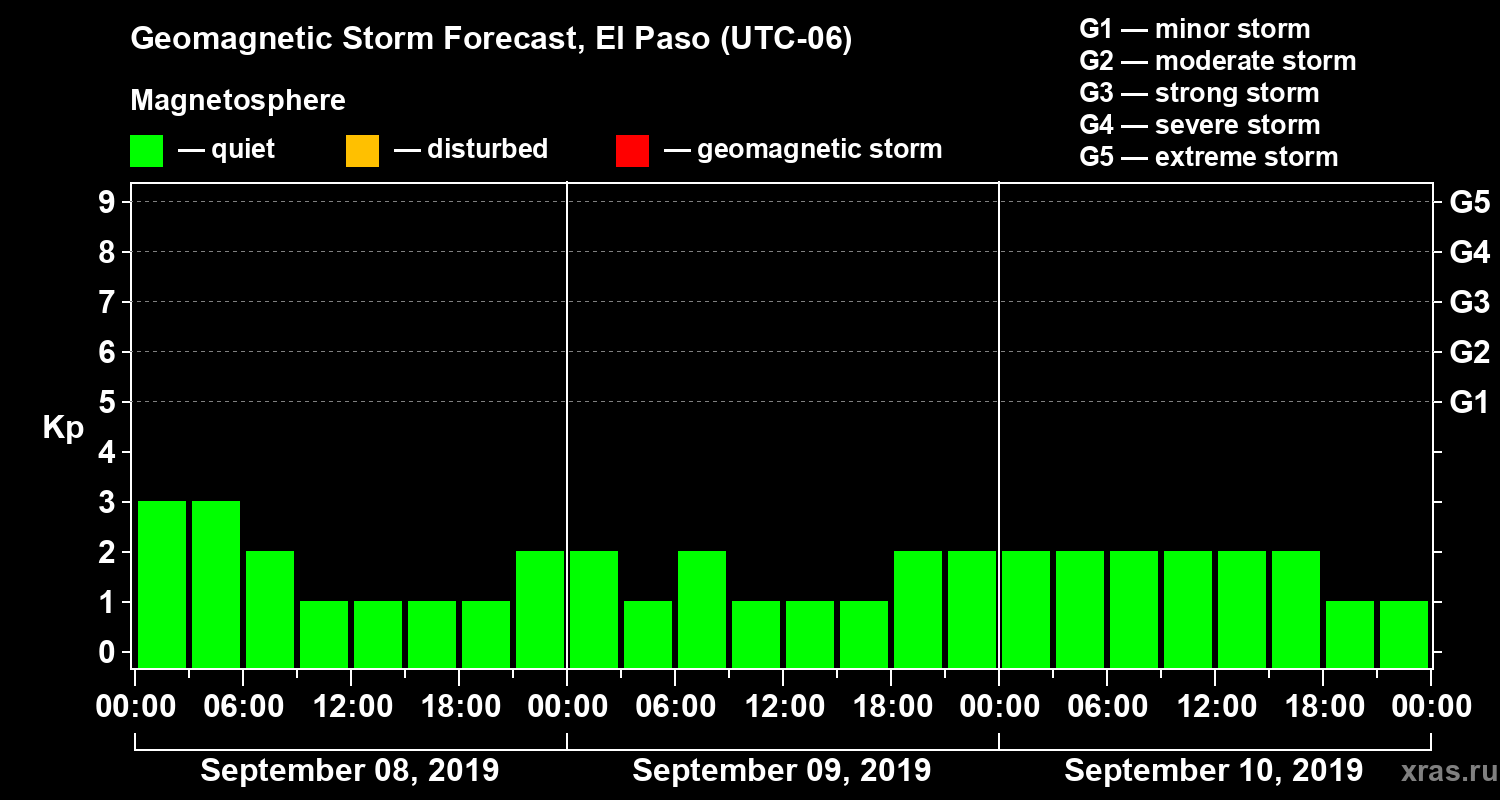 Geomagnetic storm forecast in El Paso for Sep 08, 2019