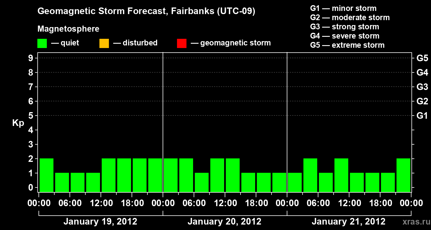 Geomagnetic storm forecast in Fairbanks for Jan 19, 2012