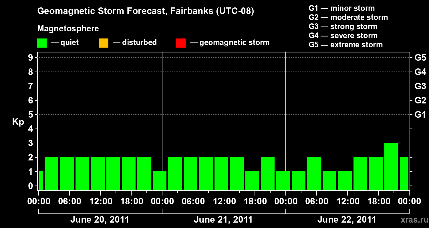 Geomagnetic storm forecast in Fairbanks for Jun 20, 2011