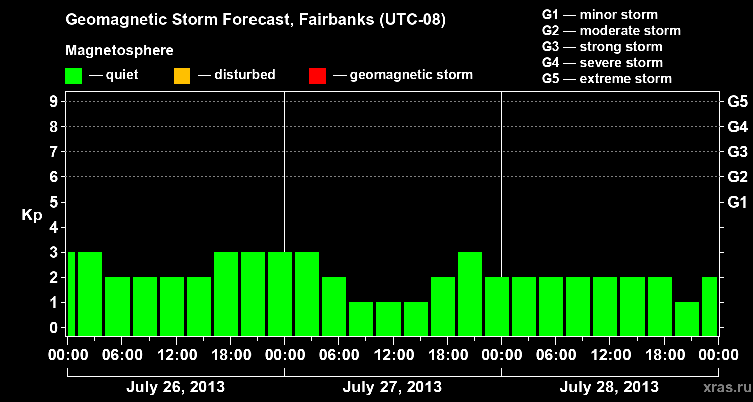 Geomagnetic storm forecast in Fairbanks for Jul 26, 2013