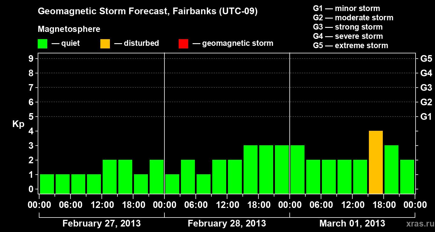 Geomagnetic storm forecast in Fairbanks for Feb 27, 2013
