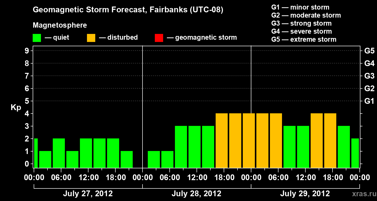 Geomagnetic storm forecast in Fairbanks for Jul 27, 2012