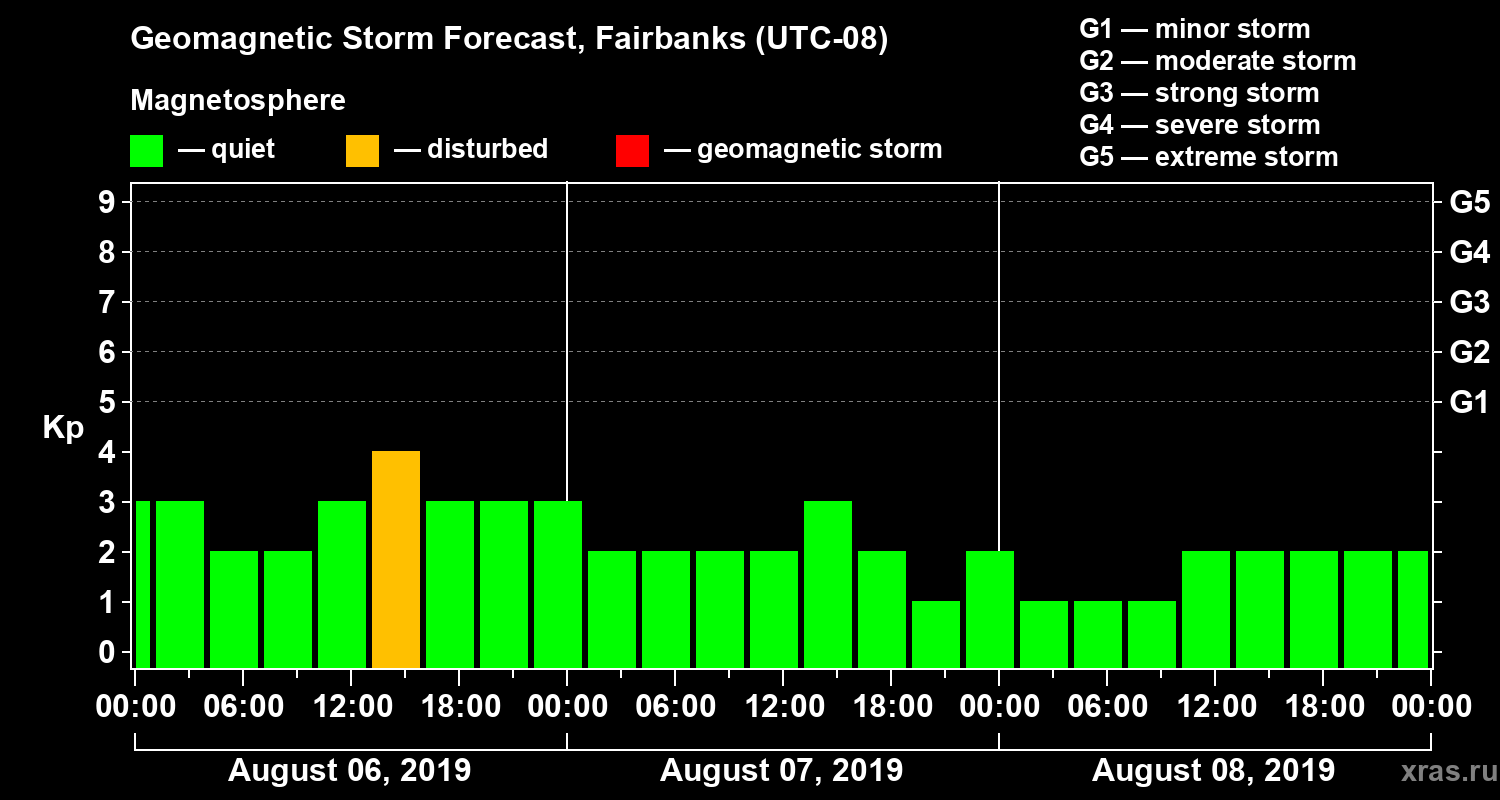 Geomagnetic storm forecast in Fairbanks for Aug 06, 2019