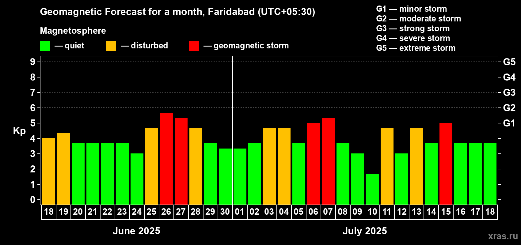 Geomagnetic storm forecast in Faridabad for Jun 18, 2025
