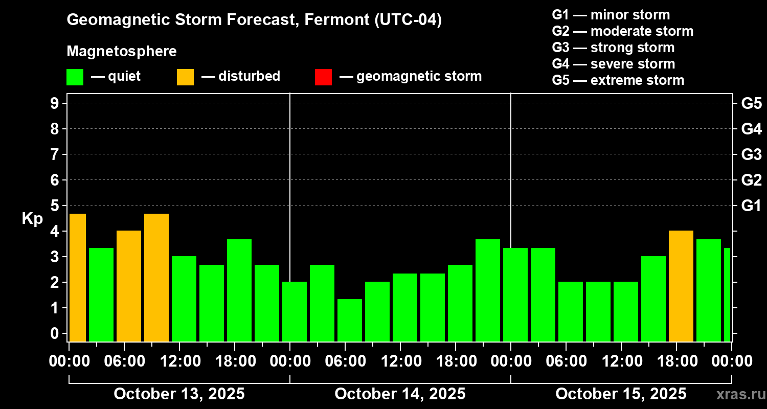 Geomagnetic storm forecast in Fermont for Oct 13, 2025