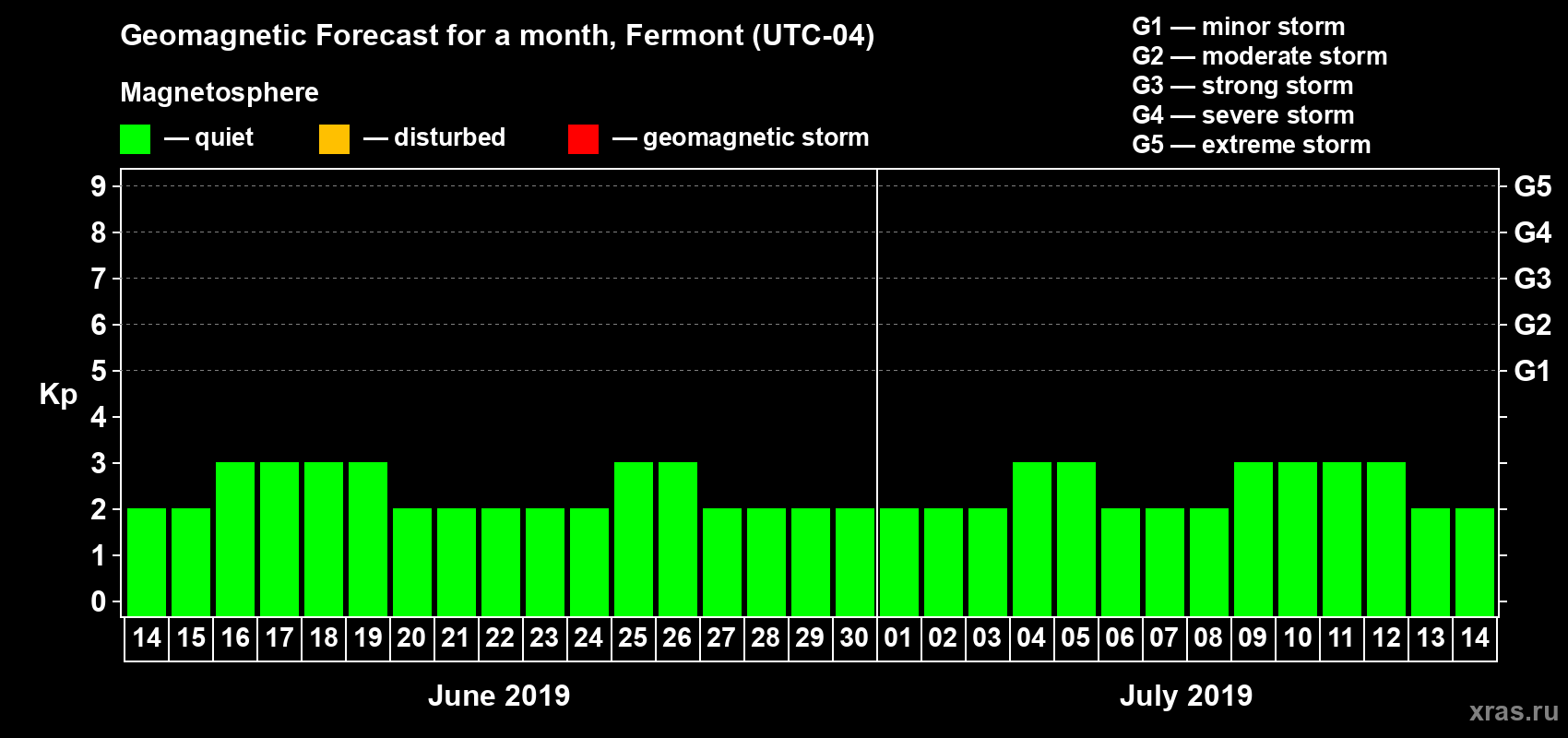 Geomagnetic storm forecast in Fermont for Jun 14, 2019