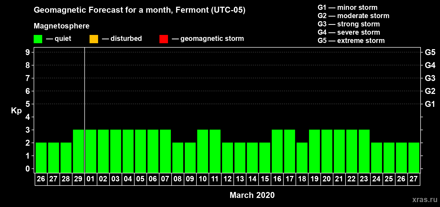 Geomagnetic storm forecast in Fermont for Feb 26, 2020