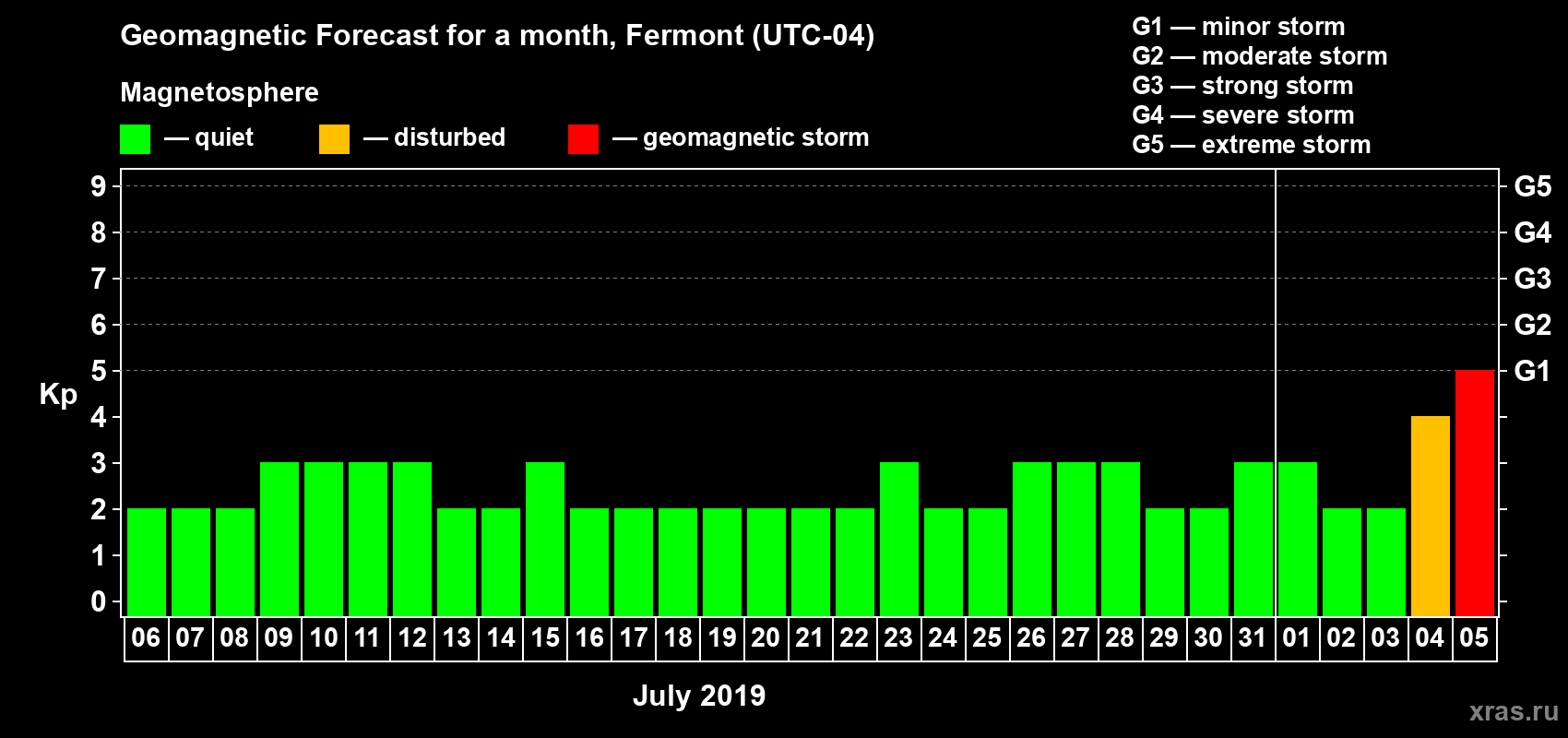 Geomagnetic storm forecast in Fermont for Jul 06, 2019