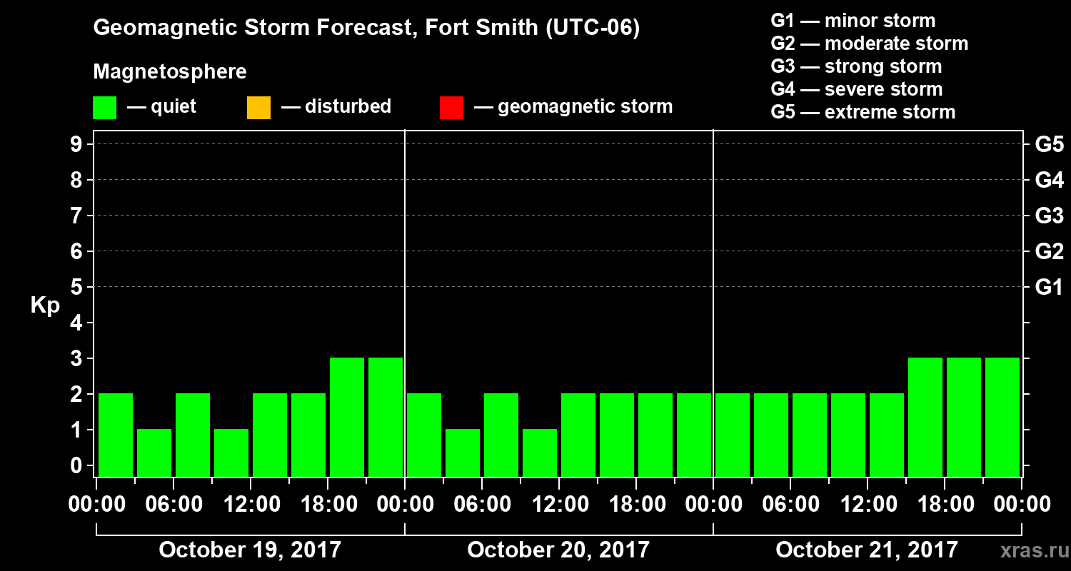 Geomagnetic storm forecast in Fort Smith for Oct 19, 2017