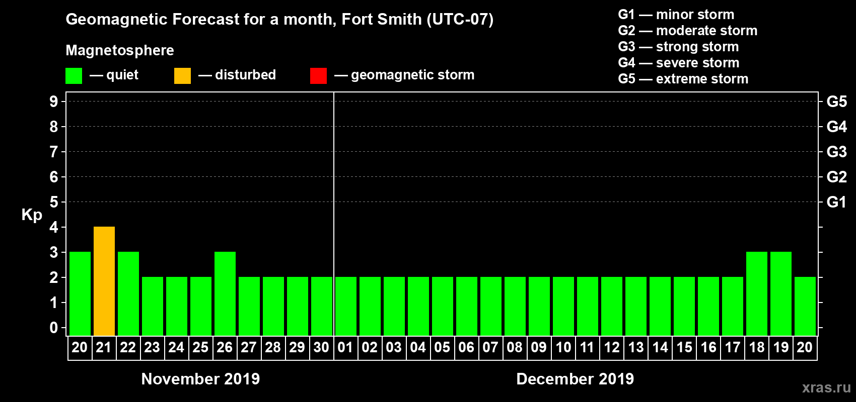 Geomagnetic storm forecast in Fort Smith for Nov 20, 2019